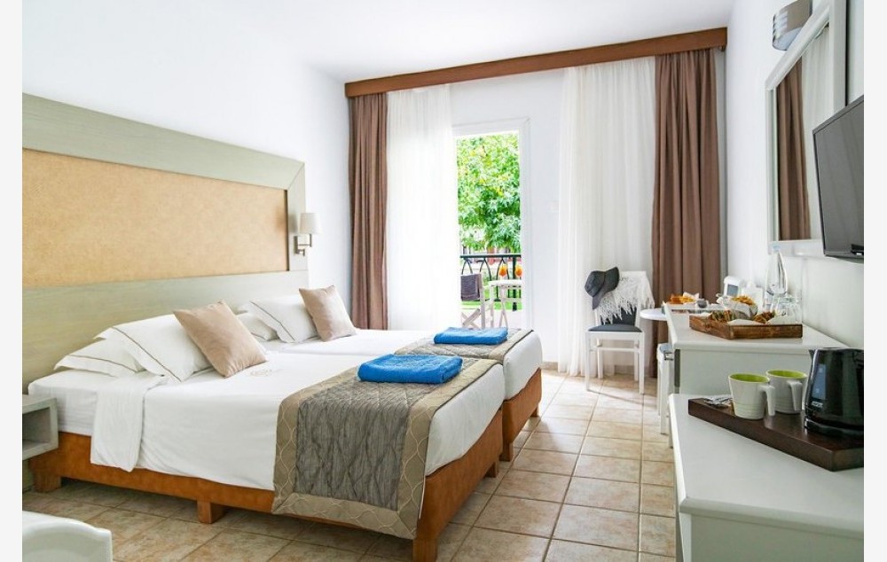 Junior Suite-28 m2, pogled na baštu, opremljeni bračnim krevetom, sadrže mali dnevni boravak sa sofom na razvlačenje, pogodan za 2-4 osobe.
