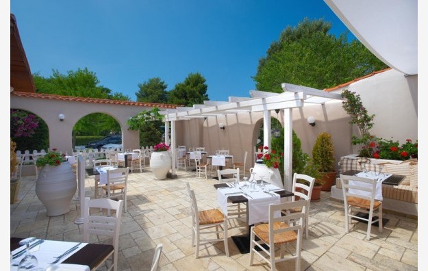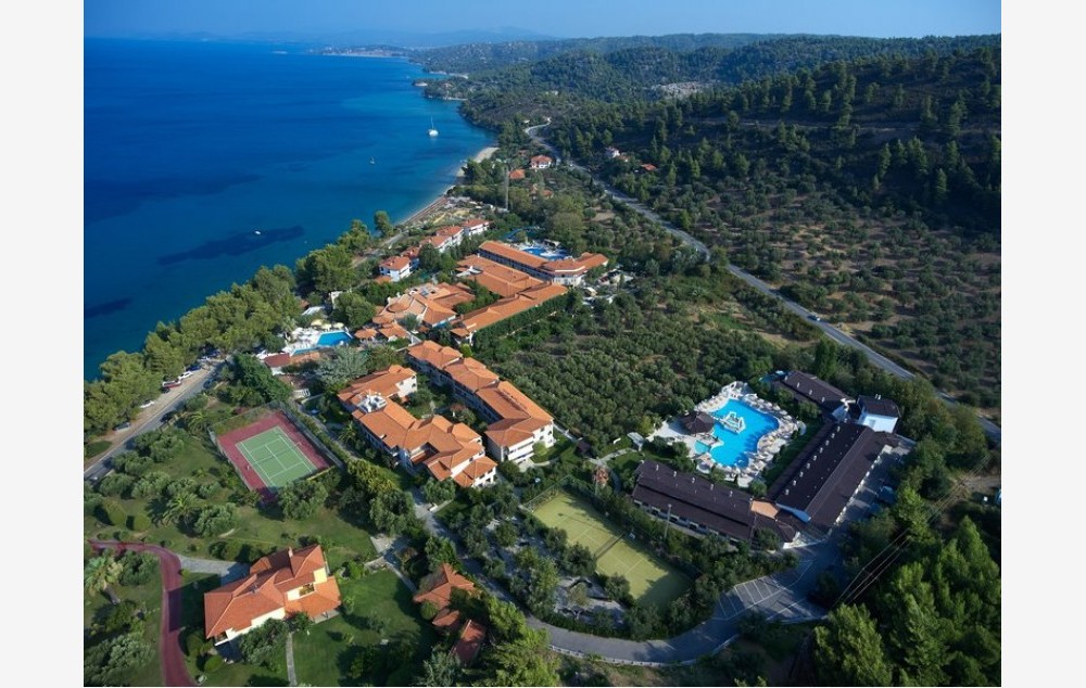 LOKACIJA: Jedan od najpopularnijih hotela na Sitoniji, nalazi se između mirnog gradića Neos Marmaras (8 km) i mesta Nikiti (11 km). Smešten je na jednoj od najlepših plaža poluostrva Sitonija – Akti Elias. Gosti takođe mogu uživati u sertifikovanom grčkom doručku i krenuti na gurmansko putovanje grčkom kuhinjom kroz seriju „Acrotel Dine Divine“, koju čini pet tematskih restorana. Jedan od njih, Hierion, nagrađen je na Turističkim nagradama 2018. u kategoriji „Gastronomija“ za jedinstven koncept restorana koji je predstavio. Podseća na "Trapezu" - trpezariju atonskih manastira.