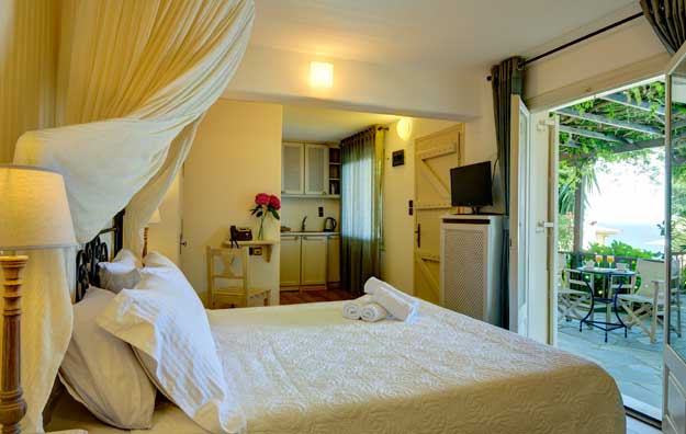 LOKACIJA: Hotel se nalazi na uzvišenju, u mestu Muresi, između plaže Papa Nero i mesta Ntamouhari. Od plaže je udaljen oko 300 m. Sastoji se od vila i kuća izgrađenih poput tradicionalnih seoskih kuća.