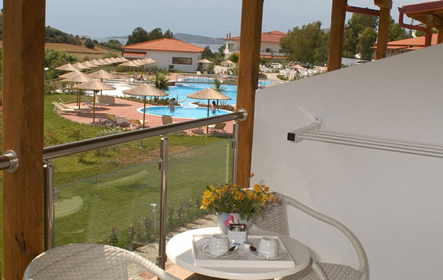 Standardna soba sa pogledom na bazen : oko 27m2, opremnjena sa dva singl ležaja I sofom. Namenjena za 2-3 osobe.