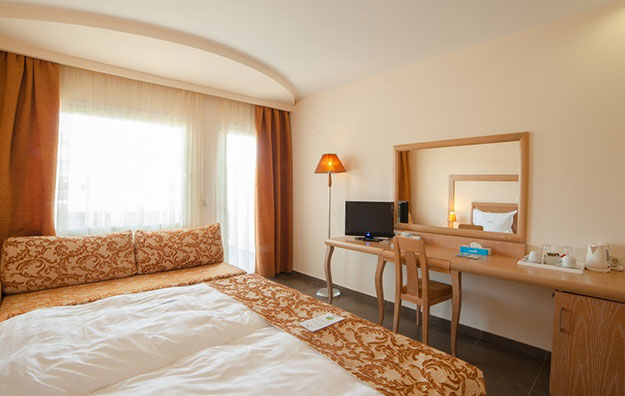 SOBE: Sobe imaju klima uređaj, telefon, SAT TV, fen za kosu u kupatilu, minibar i sef (uz doplatu), terasa ili balkon