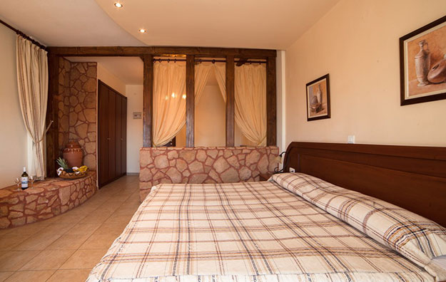 Porodična soba : oko 40m2, moze imati pogled na more ili na baštu, odpremnjena je sa francuskim ili dva sinlg ležaja I sofom. Namenjena je za 2-4 osobe.