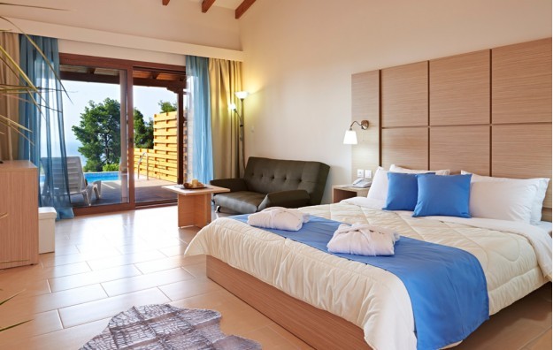 Superior soba pogledom na more oko 23m2, nalazi se u zgradi koja je najbliža recepciji, idealno locirana da pruži najbolji mogući pogled na golf Toroneos i selo Pefkohori (predviđen za 2-3 osobe, bračni krevet sa sofom)