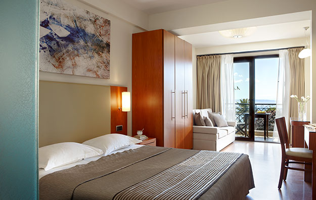 Junior suite sea front-32-38 m2, prednji pogled na more, sa bračnim ili dva odvojena kreveta sa kaučem na razvlačenje sa malom kuhinjom - aparatom za kafu, pogodan za 2-3 osobe.