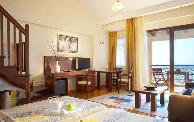 Deluxe suite pool or sea view-42-53 m2, pogled na bazen ili more, sa dnevnim boravkom i odvojenom spavaćom sobom u jednom ili dva nivoa (mezonet), pogodan za 2-4 osobe.