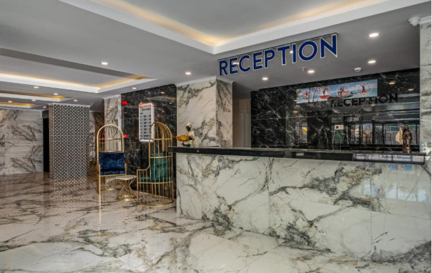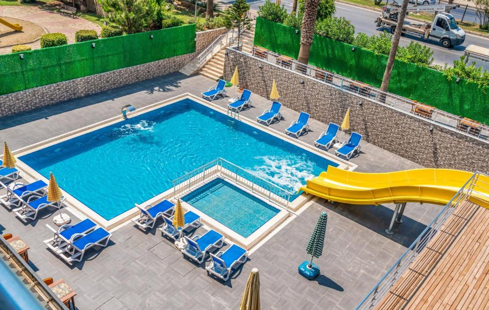 Hotelski sadržaj: Recepcija, glavni restoran, bar pored bazena, bazen za odrasle sa toboganom i odvojenim delom za decu, spa (tursko kupatilo, sauna i masaže-sve uz doplatu).