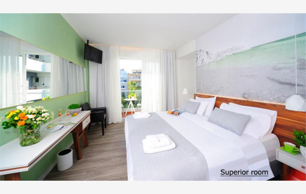Hotel ima 127 soba, koje sadrže SAT TV, telefon, wi-f intenet (besplatno), sef (uz doplatu 2 eur dnevno, po sobi), kupatilo sa tušem, fen, aparat za kafu, mini frižider (ili mini bar uz doplatu), klima uređaj (uključen u cenu), balkon. Sobe su namenjene za smeštaj maksimum 3 osobe, po svojoj osnovnoj strukturi su dvokrevetne (imaju francuski ili dva standardna ležaja, dok je treći ležaj pomoćni). Gosti se odlučuju između "standard" i "superior pool view" soba. Standardne sobe mogu imati pogled na grad, dok superior pool view imaju pogled na bazen.