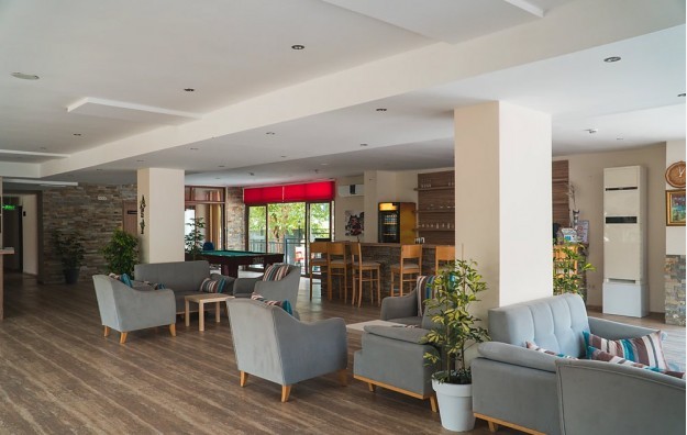 Hotelski sadržaj: recepcija, lobi, glavni restoran, 3 bara, bazen, bazen za decu sa toboganima, zatvoreni bazen, 2 tobogana, tursko kupatilo, masaža, sauna, bilijar, stoni tenis, fitnes centar, sef na recepciji, dnevna i večernja animacija, wifi u holu.