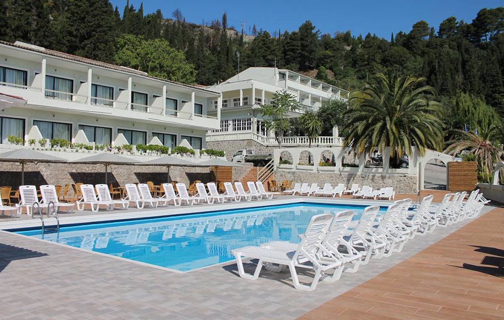 Lokacija: Nalazi se na uzvišenju, nadomak gradića Benitses, u blizini čuvene Ahilion palate. Najbliža plaža je 1,3 km od hotela, Do plaže saobraća šatl bus više puta dnevno. Aerodrom Krf je udaljen 10km.