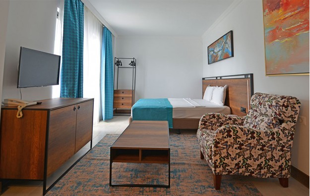 Sobe: hotel ima 155 standardnih soba, veličine izmedju 15 – 21 m² poseduju kupatilo (Tuš WC i fen za sušenje kose), bežični internet, TV, telefon, klima uređaj, mini-bar (uz doplatu), balkon ili terasa. Maksimalno borave 3 odrasle osobe. Hotel ima 8 porodičnih soba tipa 1, veličine između 25 -30m². Maksimalno borave 4 odrasle osobe. Hotel ima i 18 porodičnih soba tipa 2 koje su veličine između 40-45m². Maksimalno boravi 5 odraslih osoba. Sve porodične sobe su prostrane i komotnije u odnosu na standard sobe, opremnjene su kao standard sobe.