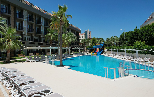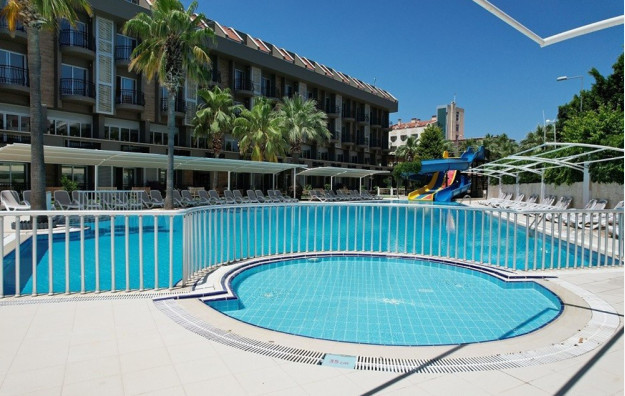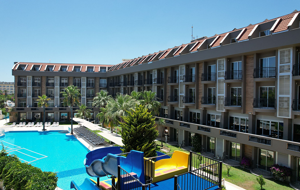 Hotelski sadržaj: Glavni restoran, 3 bara, 2 bazena za decu i odrasle, dva tobogana, wifi (besplatno u lobiju), sala za konferencije (50 osoba), teretana, pikado, stoni fudbal i tenis, sauna, tursko kupatilo, večernja animacija, odbojka na pesku, mini klub (4-12 godina).