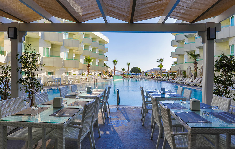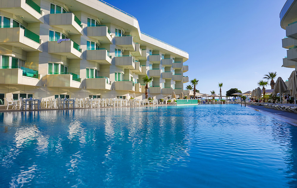 Sadržaj: Od hotelskih sadržaja, gostima je na raspolaganju: glavni restoran, snack bar, lobi bar, spoljašnji bazen, dečiji bazen, fitnes centar, teretana, sauna i tursko kupatilo, TV sala, sala za sastanke, pikado, tenis, odbojka, mmini fudbal, stoni tenis, dnevna i večernja animacija, doktor na poziv, wifi u lobiju hotela.