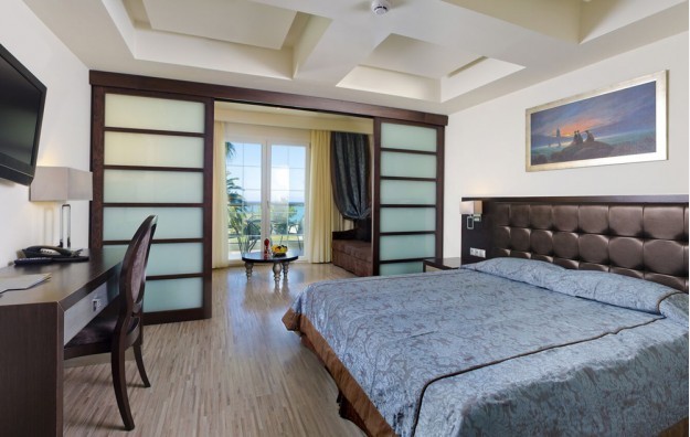 Family suite 44m2, sa pogledom na baštu, sastoji se od dve povezane spavaće sobe, dizajnirane za vrhunski porodični komfor i opuštanje; maksimalna popunjenost 2-4 osobe. Deluxe suite sa pogledom na more 60m2, luksuzan sa zadivljujućim pogledom. Odličan za romantični odmor, prostran za veliku porodicu; sastoji se od dve spavaće sobe i dnevnog boravka; dizajniran za 2-5 osoba (bračni ili dva odvojena kreveta i sofa na razvlačenje)