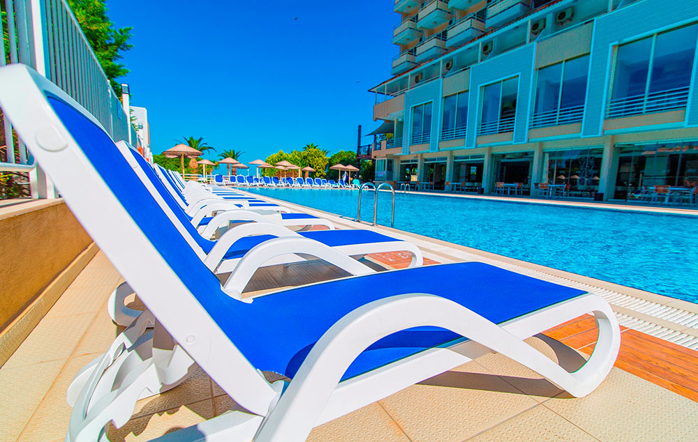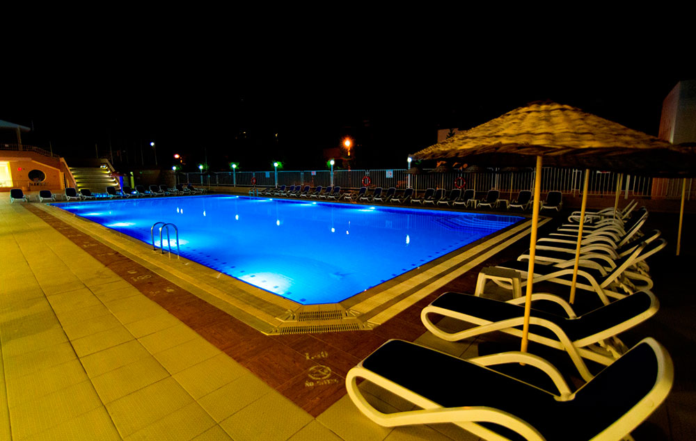 Hotelski sadržaj: 2 restorana, italijanski a la carte restoran, tri bara, otvoreni bazen, unutrašnji bazen, bazen za decu, stoni tenis, fitness centar, tursko kupatilo, sauna, masaža, salon lepote, diskoteka, igraonica, mini klub za decu od 4 do 12 godina, dečije igralište, dnevna i večernja animacija, shoping centar, boćanje, pikado, bilijar, sportovi na vodi, parking, wifi u holu.