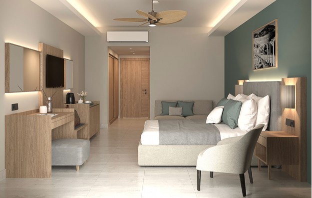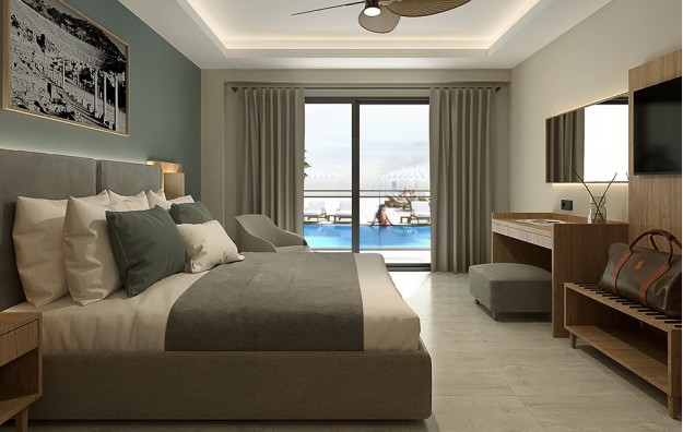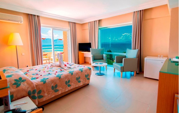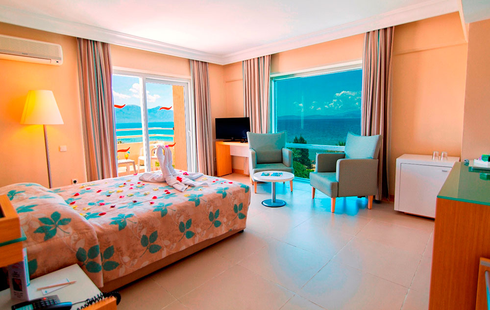 Sobe: raspolaže sa 263 sobe. Standardne sobe mogu biti sa pogledom na kopno ili delimičnim pogledom na more, površine od 25-30m2 i imaju kupatilo sa tušem /wc, SAT TV, fen za kosu, klima uređaj, mini bar, sef (uz doplatu), telefon, wifi (uz doplatu). Većina soba ima balkon. Maksimalno borave 2 odrasle osobe i 2 dece do 11 godina.
