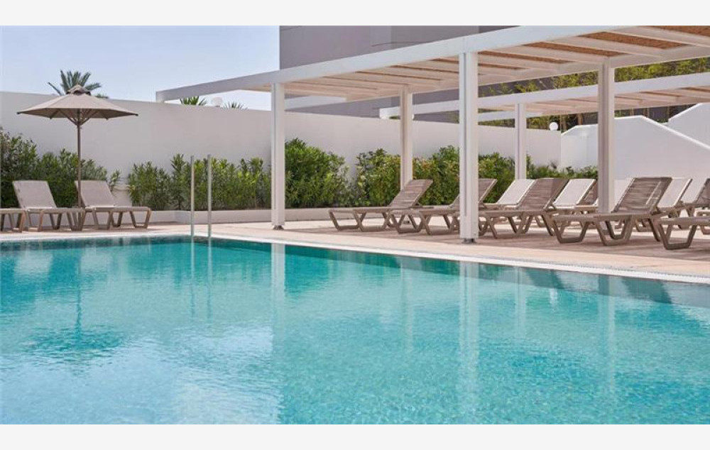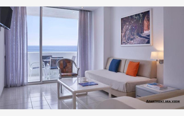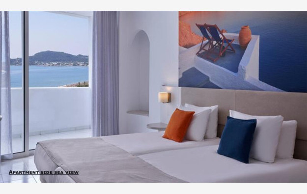 Ovaj objekat se sastoji od ukupno 65 apartmana sa zvučno izolovanim zidovima, kvadrature 48m2. U ponudi naše agencije su apartmani pogled kopno, bočni pogled more ili pogled more koji mogu da prime maksimum četiri odrasle osoba i bebu, troje odraslih, dete i bebu ili dvoje odraslih, dvoje dece i bebu. Apartmani imaju odvojenu spavaću sobu, dnevni boravak, trpezariju i potpuno opremljenu čajnu kuhinju (šporet, frižider, posuđe i mikrotalasnu). Sastoje se od francuskog ili dva odvojena ležaja u spavaćoj sobu, a u dnevnoj sobi se nalaze dva ležaja u vidu sofe na razvalačenje. U svom sastavu svi apartmani imaju Sat/TV, Wi-Fi internet (besplatno), individualni klima uređaj (besplatno), fen, kupatilo sa tušem, set za kafu/čaj, frižider, sef (besplatno), telefon (uz doplatu), balkon ili terasu. Svi apartmani su po svojoj osnovnoj strukturi dvokrevetni, sastoje se od francuskog ili dva singl ležaja, dok ostali ležajevi mogu biti pomoćni. Apartmani su prilagođeni osobama koje koriste invalidska kolica. Bebi krevetac je dostupan na upit, uz doplatu 3 eur dnevno.