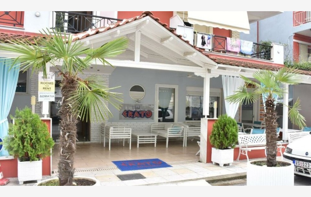 LOKACIJA: Hotel Erato se nalazi u centru Paralije, udaljen je oko 150 m od plaže, u mirnom delu naselja. Ispred hotela se nalazi uređeni park sa pratećim sadržajem za igru dece kao i prostor za parkiranje automobila.