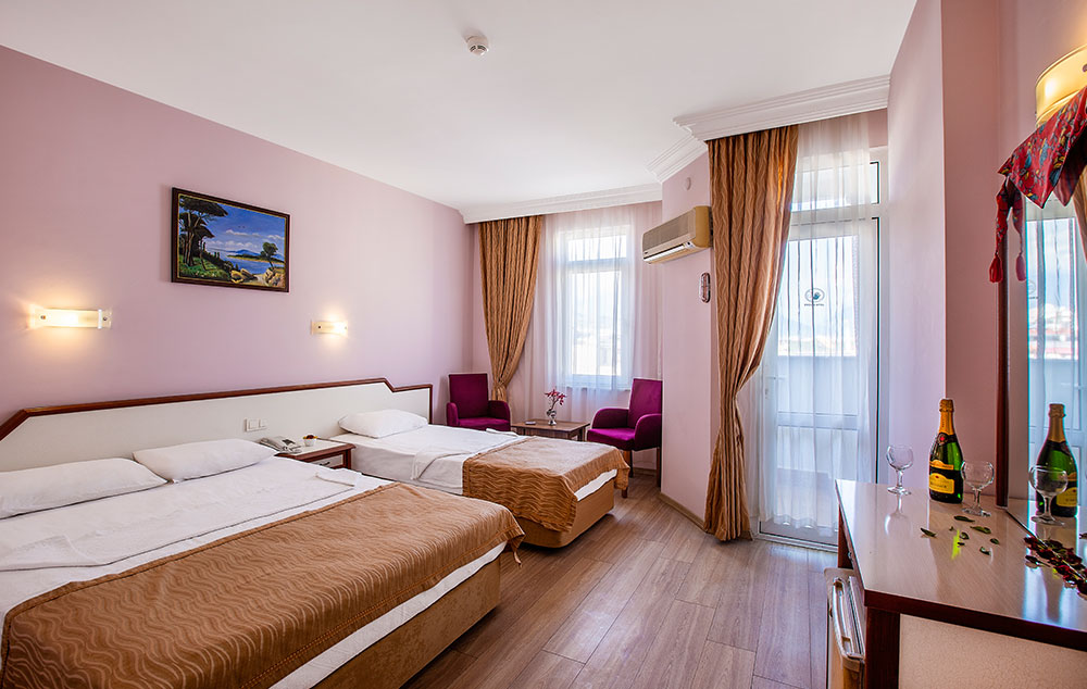 Sve sobe imaju: Kupatilo sa tuš/wc, SAT/TV, fen za kosu, klima uređaj, telefon, sef (uz doplatu), mini bar (uz doplatu), balkon ili terasu.