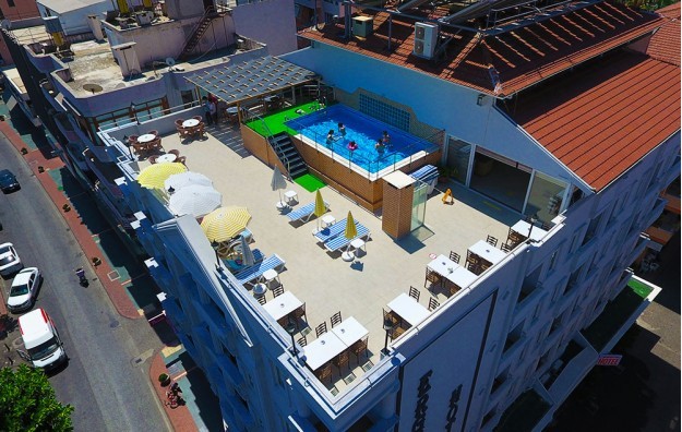 Hotelski sadržaj: Recepcija, restoran sa terasom, bazen na krovu hotela, bar pored bazena, ležaljke i suncobrani pored bazena su besplatni, lift, besplatan wi fi u lobiju.