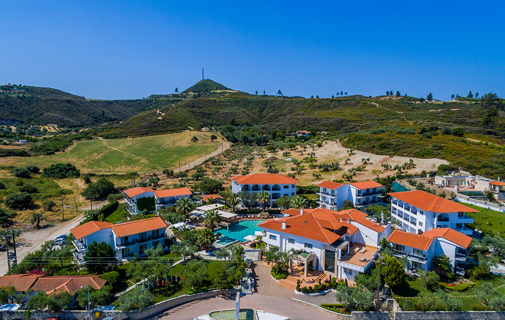 LOKCIJA: Nedaleko od plaže (150m), na glavnom putu na ulasku u Pefkohori, nalazi se Flegra Palace. Hotelski kompleks se sastoji od 6 manjih zgrada.