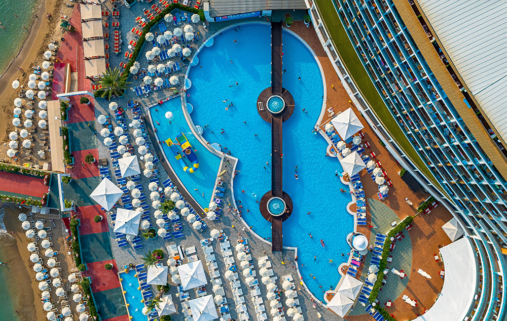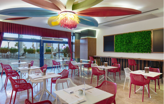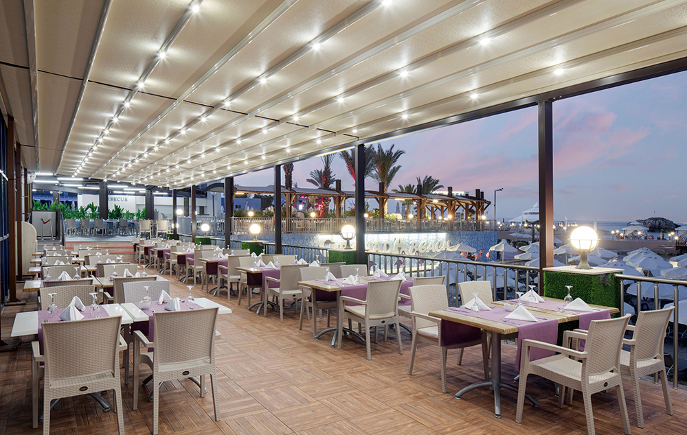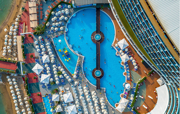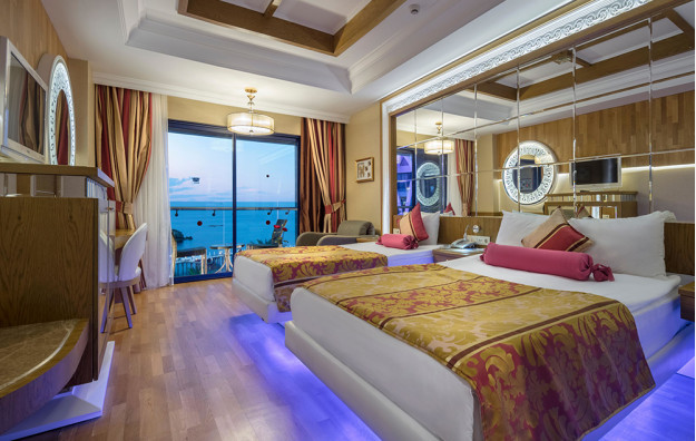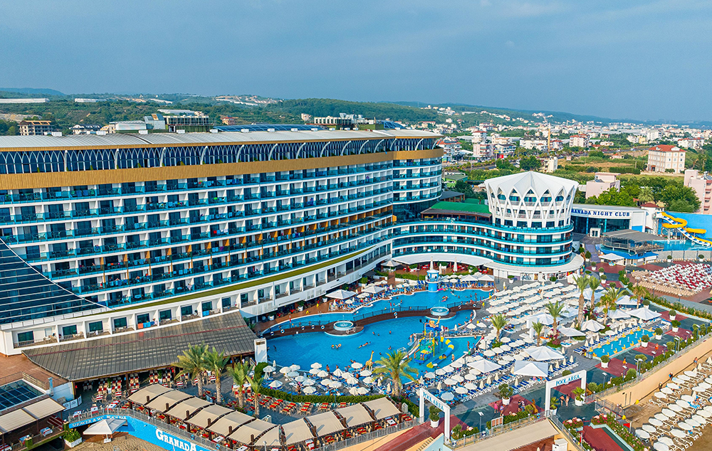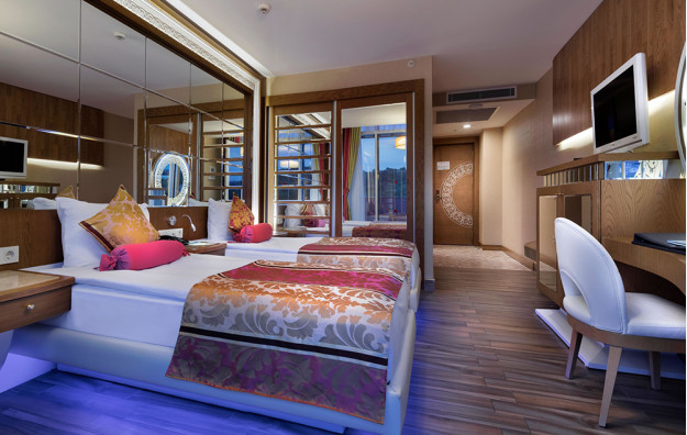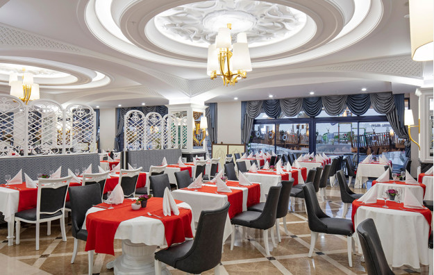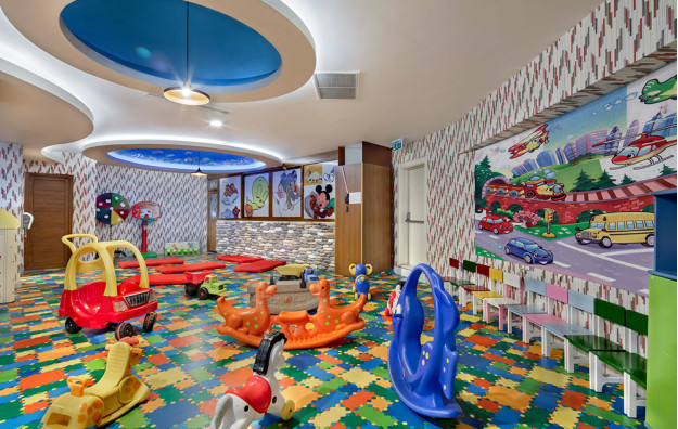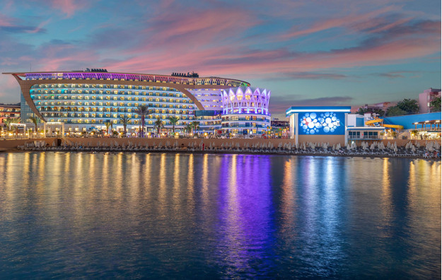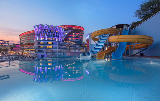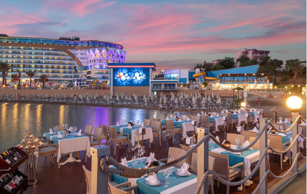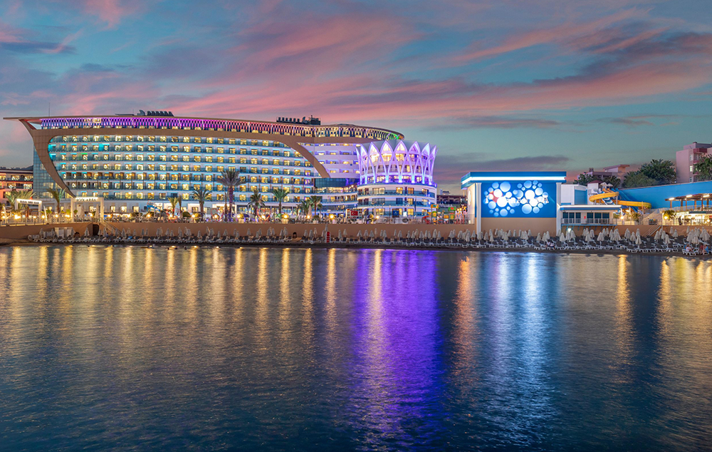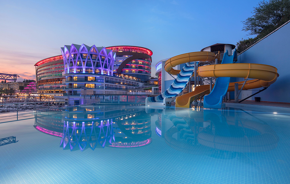 Hotelski sadržaj: Recepcija, glavni restoran, 5 a la carte restorana (riblji, turski, azijski, meksički, mediteranski-uz doplatu), dečiji meni, 10 barova, bazeni za odrasle (spoljašnji i unutrašnji), bazeni za decu (spoljašnji i unutrašnji), bazen sa toboganima, mini klub (od 4-10 god.), dečija igraonica, dnevna i večernja animacija za decu i odrasle, spa centar (hamam, sauna, parno kupatilo i teratana – sve besplatno), amfiteatar, odbojka na plaži, bioskop, stoni tenis, mini golf, kuglanje, bilijar, wi fi u celom hotelu.