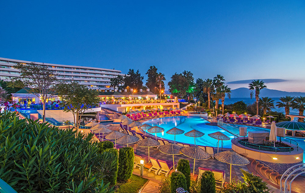 Položaj: prostrani hotelski kompleks, okružen zelenilom, nalazi se na plaži “Ladies beach”, na oko 3km od centra Kušadasija, aerodrom u Bodrumu je na oko 110km udaljenosti od hotela.
