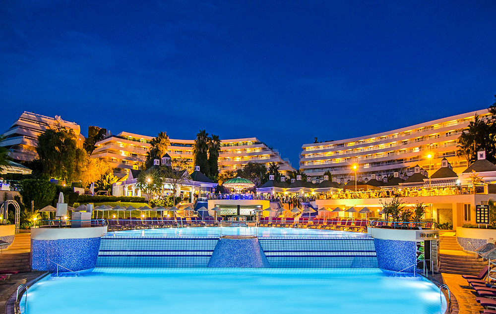 Hotelski sadržaj: recepcija, lobi, glavni restoran, 7 barova, otvoreni bazeni (peškiri, suncobrani i ležaljke pored bazena besplatno korišćenje), 3 a la carte restorana, diskoteka, menjačnica, prodavnice, dečiji bazen, dečija igraonica, mini-klub (deca starosti od 04-12 godina), sauna, tursko kupatilo, aerobik, fitness centar, animacija (sportska, dnevna i večernja), bilijar, stoni tenis, tenis (osvetljenje terena uz doplatu), pikado, wifi.