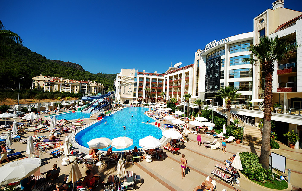 Položaj: Hotel je smešten pored borove šume u mirnijem delu letovališta. Udaljen je oko 300 metara od plaže i oko 3 km od centra Marmarisa. Bodrum aerodrom je od hotela udaljen oko 150 km.