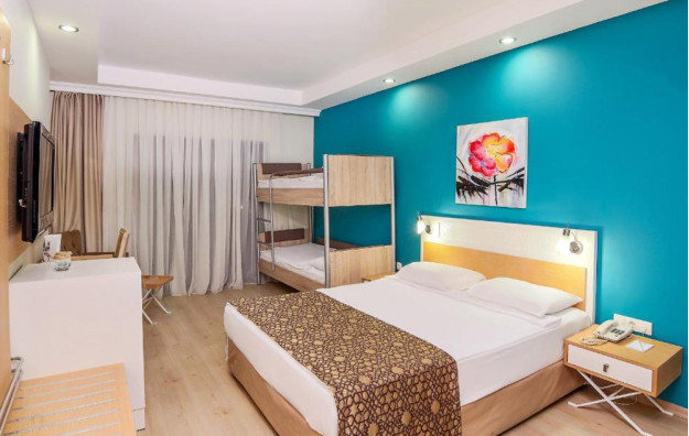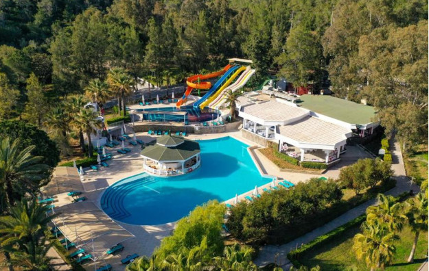 Sadržaj hotela: Glavni restoran, 2 a la carte restorana (turski i riblji), 3 sneck resorana, 8 barova, poslastičarnica, 3 spoljašnja bazena od kojih je jedan sa 4 tobogana, 1 dečiji bazen, dečiji klub (4-12 godina), teen club (13-17 godina), tursko kupatilo, sauna, parno kupatilo, masaža, fitnes centar, teniski teren, stoni tenis, mini golf, aerobik, aerobik u vodi, košarka, odbojka na plaži, pikado, bilijar, elektronske igre, diskoteka, mini bioskop, prodavnice, lekar, frizer, usluga pranja i peglanja veša, dnevna i večernja animacija, wifi u celom hotelu.