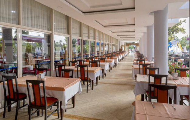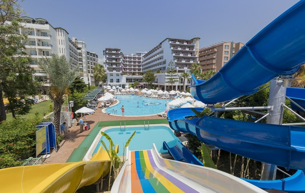 Hotelski sadržaj: Recepcija, glavni restoran, a la carte restoran, 5 barova, bazene da odrasle i decu, akva park sa 3 tobogana, animacija za odrasle i decu, mini klub (4-12 god.), dečije igralište, tursko kupatilo, fitness centar, masaže (uz doplatu), pikado, stoni tenis, odbojka, košarka, wi fi (besplatan samo u lobiju).