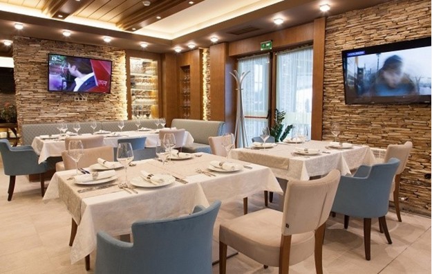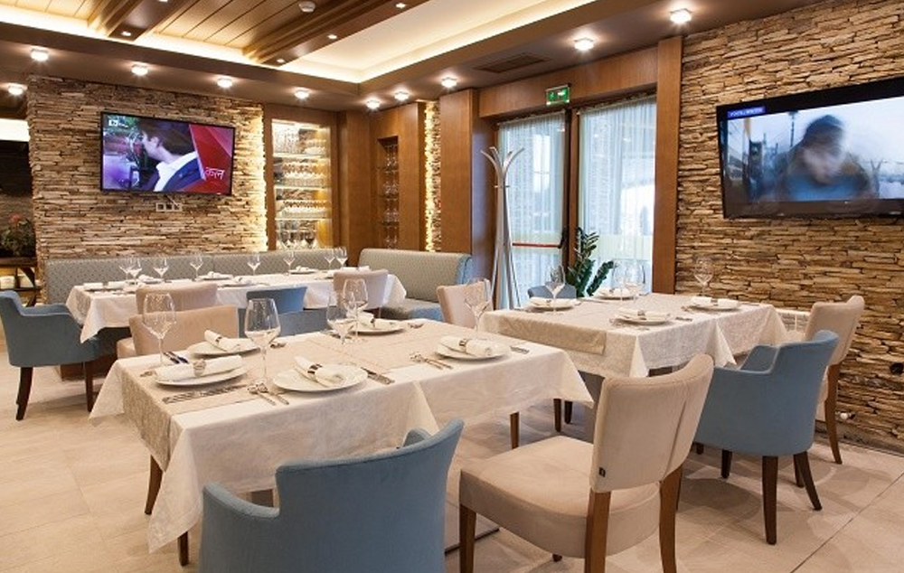 Sadržaj hotela: recepcija, lobi, lobi bar, 3 restorana, lobi bar, VIP bar, Spa centar, zatvoreni bazen, dečiji bazen, relax soba, Finska sauna, panoramic infrared sauna, parno kupatilo, đakuzi, konferencijska sala , dečija igraonica, skijašnica, internet, minibus prevoz do gondole, parking.