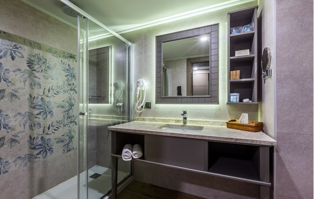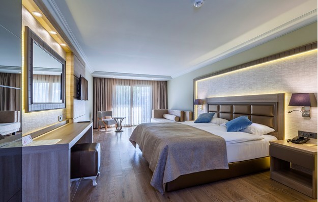 Soba: standardne sobe sa bočnim pogledom na more ili kopno, dimenzija od 32m2-35m2 poseduju kupatilo (Tuš Wc i fen za sušenje kose), TV, klimu, sef (besplatno), mini-bar (dnevno dopunjavanje samo sa vodom, mineralnom vodom i sokovima), telefon, internet, ketler, balkon. Maksimalno borave 4 odrasle osobe (pogled kopno) i 2 odrasle osobe i 2 dece do 13 i 7 godina ( bočni pogled more). Junior suite dimenzija oko 45m2, se sastoje od dve prostorije (dnevni boravak sa sofom na razvlačenje i spavaća soba sa francuskim ležajem) i opremnjene su kao i standard sobe. Maksimalno borave 4 odrasle osobe. Deluxe sobe sa pogledom na baštu su dimenzije oko 30m2, opremnjene su isto kao i standard sobe. Maksimalno borave 3 odrasle osobe. Superior sobe sa pogledom na baštu oko 35m2, sastoji se iz dve prostorije koje nisu odvojene vratima, opremnjene su isto kao i standard sobe. Maksimalno borave 2 odrasle osobe i 2 dece do 13 i 7 godina