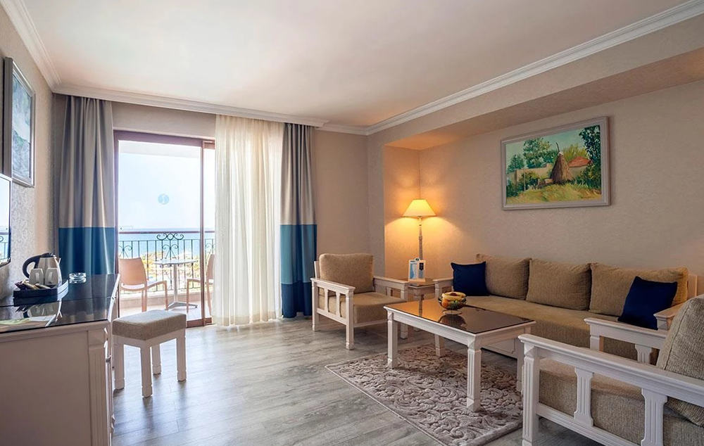 Senior suite sobe (62m2). Sastoji se od dve spavaće i dnevne sobe. Sadrži francuski ležaj i dva odvojena ležaja. U dnevnoj sobi sofu, kupatilo sa đakuzijem. Maksimalno mogu da borave četiri odrasle odobe i dva deteta do 12 i 2 godine.
