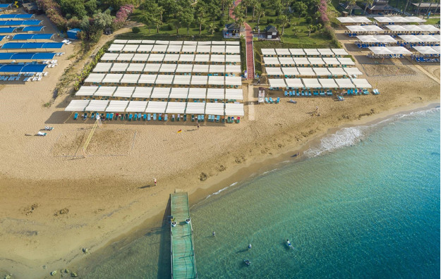 Plaža: Hotelska prviatna peščana plaža. Ležaljke, suncobrani, dušeci i peškiri su besplatni. Bar na plaži uključen u cenu.