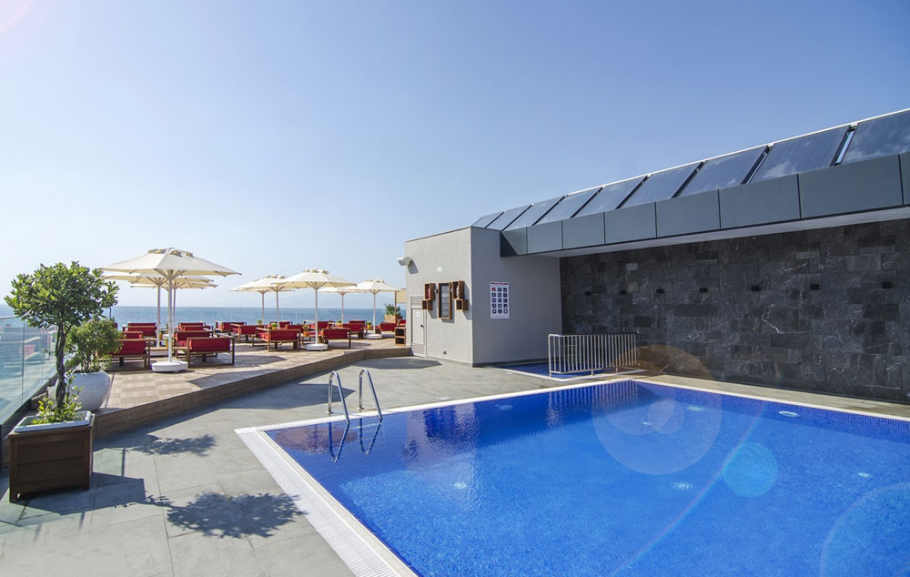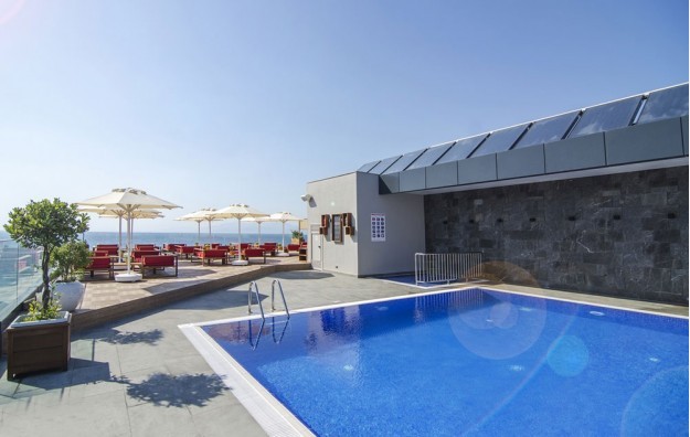 Hotelski sadržaj: recepcija, lobi, otvoreni bazen na vrhu hotela, 2 bara, restoran na krovu sa predivnim pogledom na more i grad, fitness centar, konferencijska sala, garaža - besplatno za goste hotela, wifi u holu.