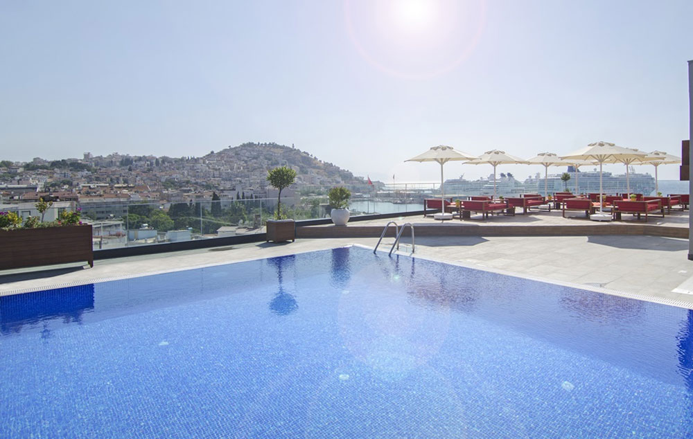 Položaj: hotel se nalazi oko 200m od gradske plaže, u centru Kušadasija, na samom šetalištu uz more, aerodrom u Bodrumu je na oko 120km udaljenosti od hotela.