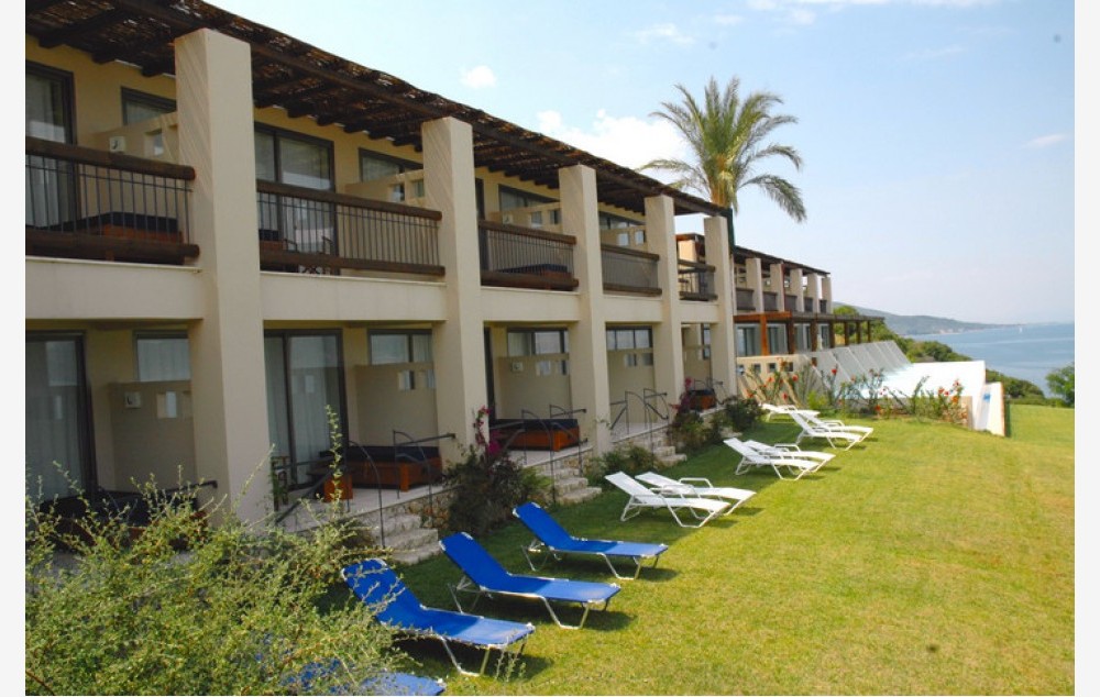 LOKACIJA : Luksuzni hotel koji se nalazi u prelepoj prirodi, na istočnoj obali Lefkade. Hotel se nalazi na 3 km od mesta Nikiana, 5 km od mesta Nidri i 12 km od glavnog grada Lefkasa. Svakodnevno saobraćaju autobusi do Lefkade i Nidrija. Smešten je između glavnog puta i obale, odnosno plaže. Hotel se sastoji od glavne zgrade i bungalova, kaskadno poređanih prema plaži. Plaža je kamenita sa postojecim pontonom.