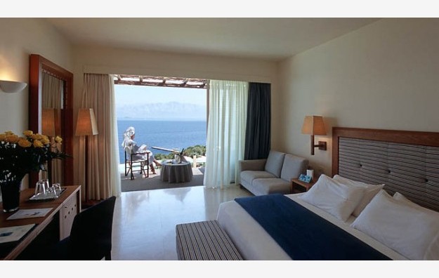 Suite sea front with private pool - – oko 25m2 sa pogledom na more, locirani su u glavnoj zgradi. Apartmani otvorenog plana opremnjeni su sa francuskim ležajem I sa sofom na razvlačenje I sa terasom sa privatnim bazenom. Namenjen za 2-3 osobe.