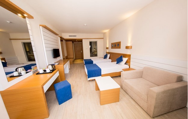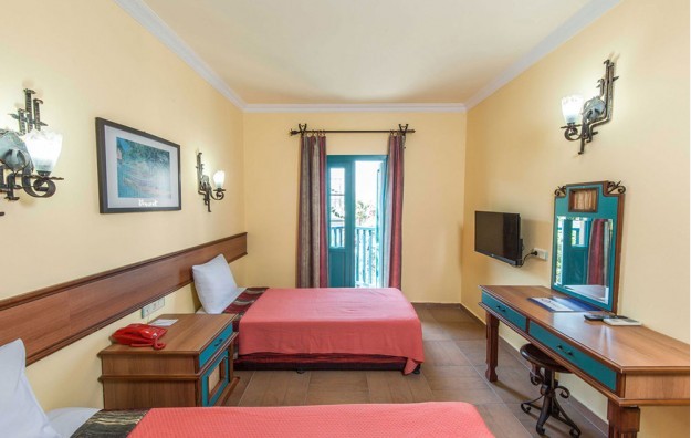 Sobe: hotelske sobe nalaze se u glavnoj zgradi i veličine su između 20-25m², moderno opremljene, poseduju kupatilo (Tuš WC i fen za sušenje kose), mini-bar (samo voda je besplatna po dolasku, ostalo uz doplatu), klima uređaj, sef (besplatno), SAT TV. Maksimalno borave 3 odrasle osobe. Club sobe se nalaze u dodatnoj zgradi (club zgradi), poseduju kupatilo (Tuš WC i fen za sušenje kose), mini-bar (samo voda je besplatna po dolasku, ostalo uz doplatu), klima uređaj, sef (besplatno), SAT TV uredjaj. Maksimalno borave 3 odrasle osobe. Porodične hotelske i club sobe, sastoje se iz dve prostorije - u jednoj se nalaze dva ležaja, u drugoj prostoriji su dve sofe, poseduju kupatilo (Tuš WC i fen za sušenje kose), mini-bar (samo voda je besplatna po dolasku, ostalo uz doplatu), klima uređaj, sef (besplatno), SAT TV uređaj. Maksimalno borave 4 odrasle osobe.