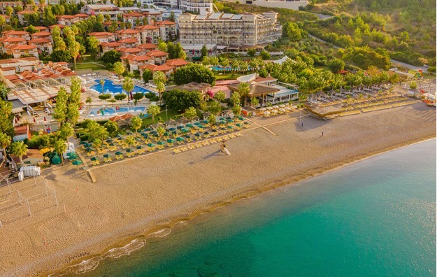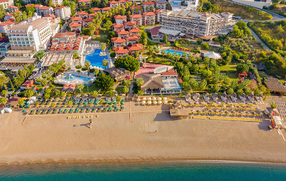 Položaj: Rezort se nalazi u regiji Okurdžalar, od čijeg centra je udaljen 1km. Od centra Alanje je udaljen 35km od centra Alanje, od aerodrom u Antaliji 90km. Kompletno je renoviran 2019-e godine.