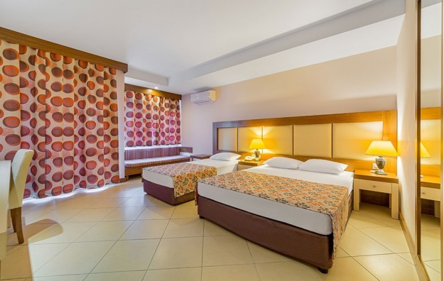 Hotelski sadržaj: Recepcija, glavni restoran sa dečijim menijem i baby cornerom, 2 a la carte restorana (besplatno 1 tokom boravka uz prethodnu rezervaciju), 5 bara (vitamin bar uz doplatu), disco club (besplatno), 3 otvorena bazena za odrasle, 2 otvorena bazena za decu, bazen sa 3 tobogana (1 za odrasle i 2 za decu), spa centar (teretana i hamam – besplatno), dnevna i večernja animacija za decu i odrasle, aerobic i aquabik, odbojka na pesku, vaterpolo, pikado, boćanje, mini club (od 4-12 god.), mini disco, igralište za decu. Wi fi je dostupan u lobiju i zajedničkim prostorijama.