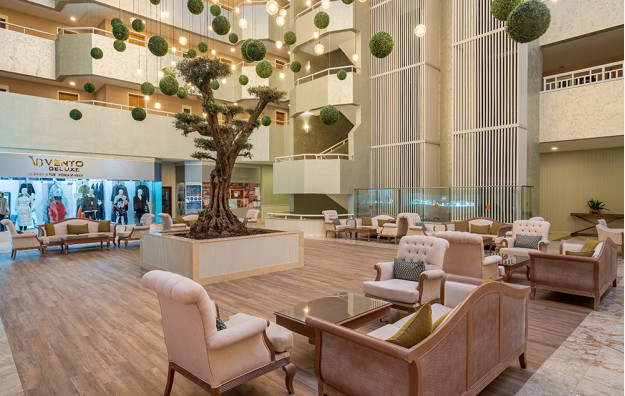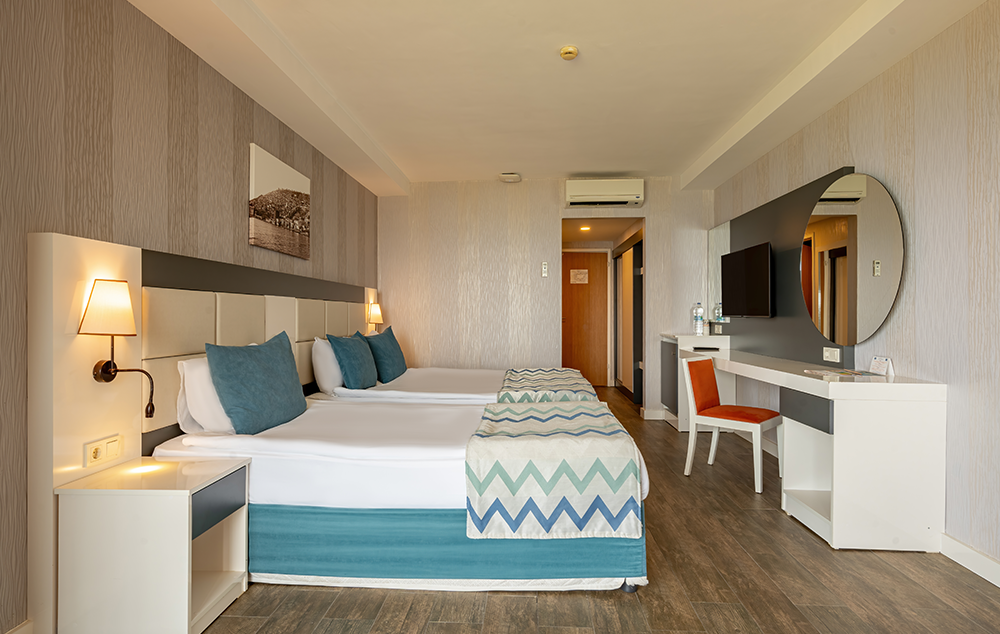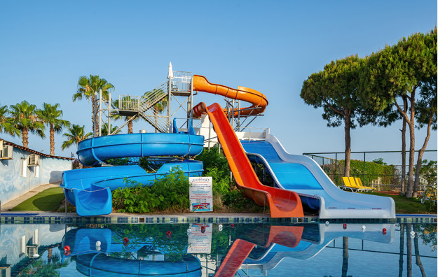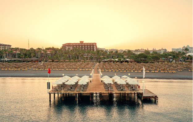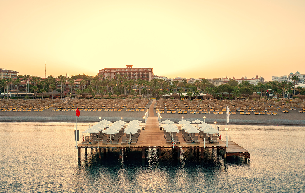 Hotelski sadržaj: Recepcija, glavni restoran, i 3 a’la carte restorana (turski, italijanski i riblji-plaćaju se), 4 bara, unutrašnji bazen, 2 otvorena bazena, 2 vodena tobogana, dečiji bazen, dečiji klub (od 4-12 god.), dnevna i večernja animacija, sportski tereni za tenis, fudbal i odbojku na plaži, stoni tenis, pikado, tursko kupatilo, sauna, fitnes centar.