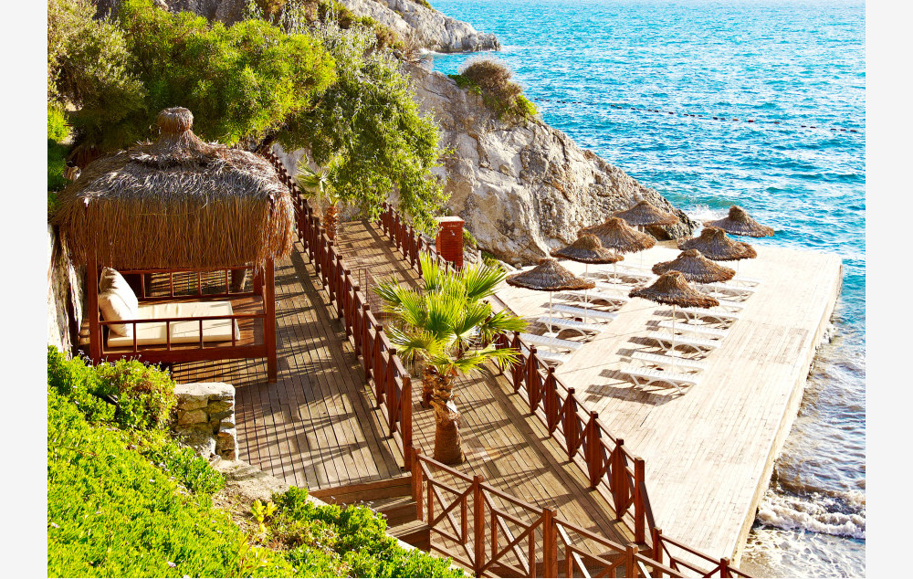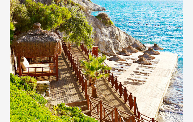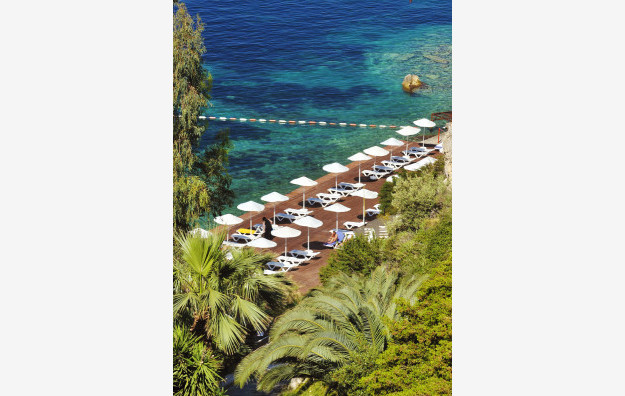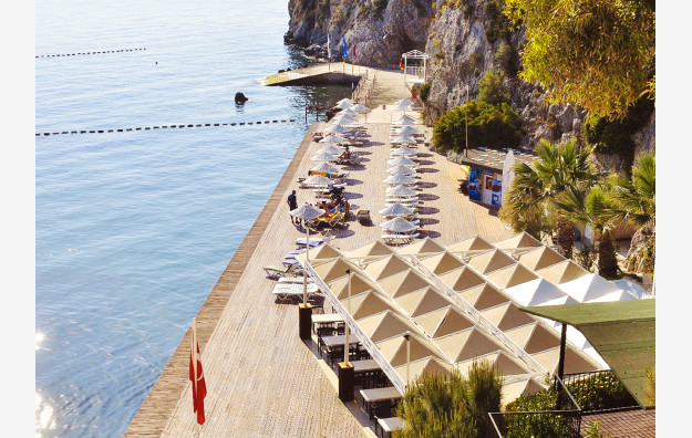 Plaža: Hotel poseduje plažu i dve platforme na kojima se nalaze ležaljke, suncobrani i peškiri koji su besplatni za goste hotela.