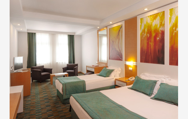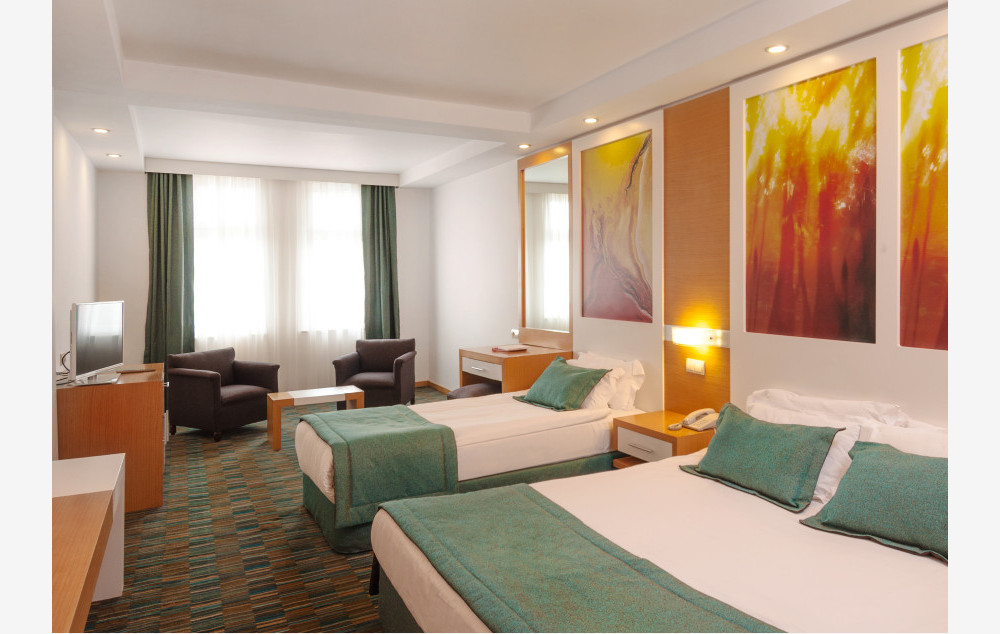 Sobe: Hotelski kompleks je kaskadnog tipa, sastoji se iz glavne zgrade i aneks zgrade i raspolaže sa 329 soba. Sve sobe su klimatizovane i imaju kupatilo (Tuš WC i fen za sušenje kose), telefon, SAT TV, minibar, sef (besplatno). Club sobe u aneks zgradi imaju balkon.