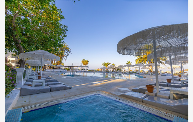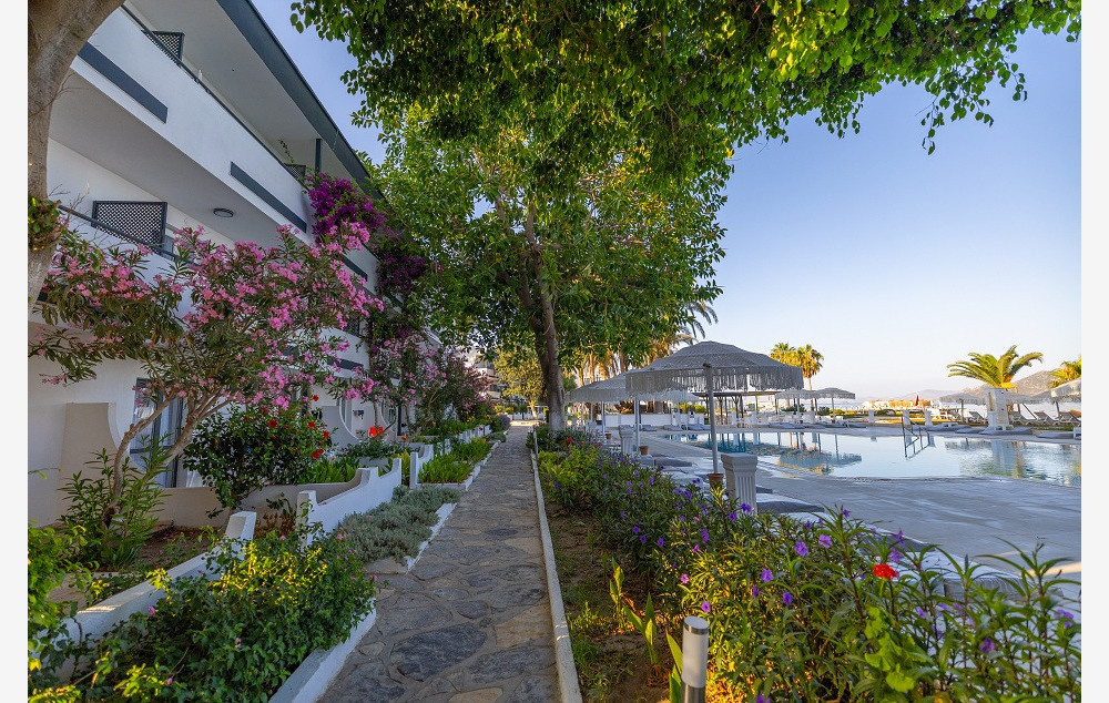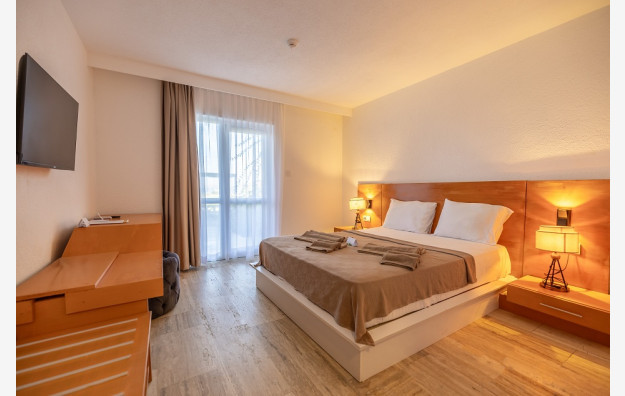 Sobe: raspolaže sa 80 soba, 63 standardne sobe i 11 superior soba. Standard sobe sa pogledom na kopno ili more su površine od 20m2 i poseduju kupatilo (tuš WC i fen za sušenje kose), SAT TV, klima uređaj, telefon, sef (uz doplatu), mini bar (flaša vode pri dolasku), balkon. Maksimalno borave 3 odrasle osobe. Family sobe su dve prostorije odvojene vratima i isto su opremljene kao standard sobe. Maksimalno borave 3 odrasle osobe i 2 dece do 12 godina.