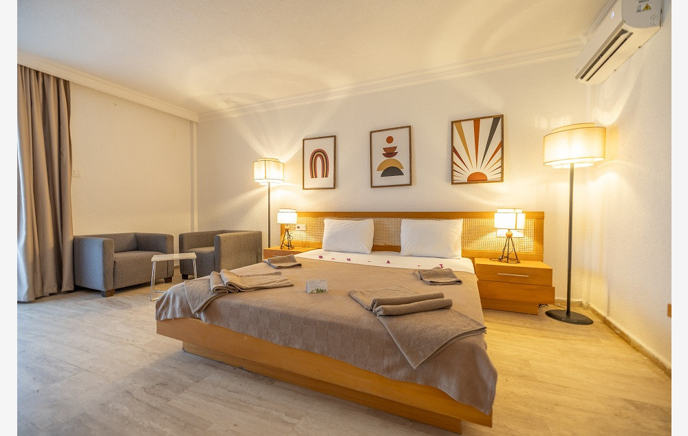 Položaj: Hotel se nalazi 4km od Turgutreisa, na plaži, na 22 kilometra od Bodruma i na oko 55 km od aerodroma u Bodrumu.