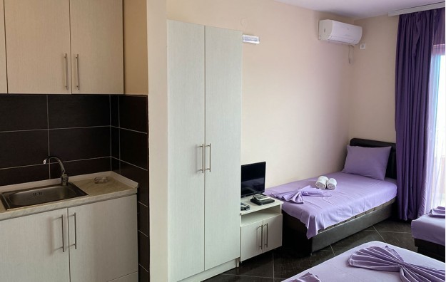 “LARA-S”***kategorizcije sa 3*ima studio apt .strukture1/2,1/3,1/4 ležaja.Svaki poseduje terasu,kupatilo(fen za kosu), frižider,klimu,minikuhinju(komplet opremljenu),Wi-FI,kablovsku TV.U dvorištu objekta nalazi se igraonica za decu -tobogani,ljuljaške,klackalice i drugi rekviziti za dečiju zabavu.Objekat ima lift , recepciju i dvoetažni restoran.