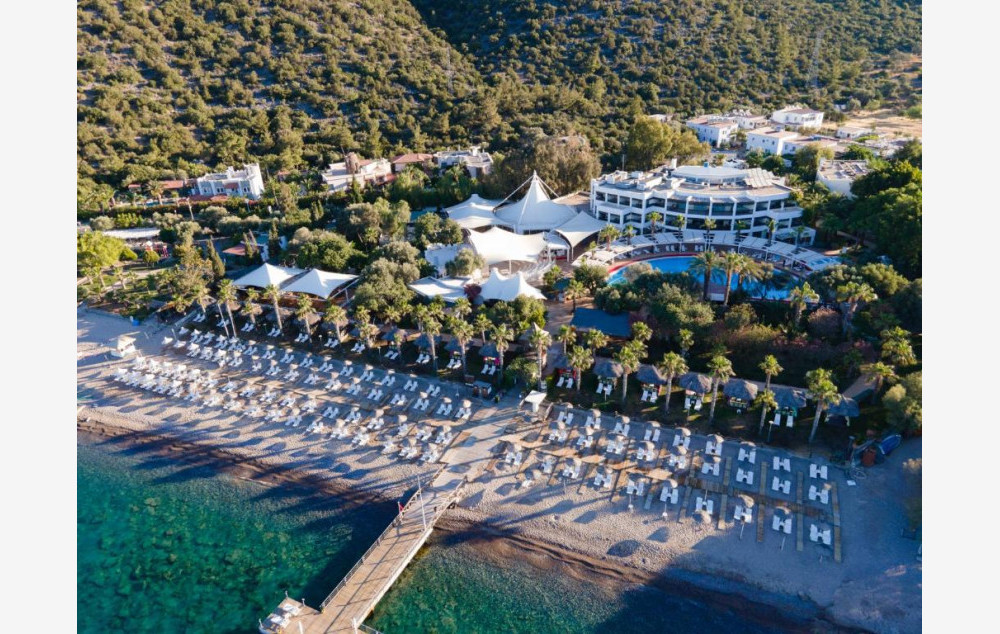 Položaj: Hotel se nalazi u mestu Jaliciftlik, na svojoj plaži, okružen zelenilom. Od centra Bodruma je udaljen 16 km, dok je od aerodroma udaljen oko 40 km. Otvoren je 1989.godine, a poslednji put je renoviran 2018.godine. Prostire se na površini od 17.000 m².