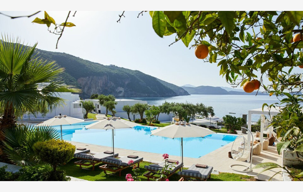 LOKACIJA: Luksuzan hotelski kompleks, nalazi se u zalivu Lichnos, udaljen oko 2.5km od centra Parge. Kompleks se prostire na površini od 22.500 m2, okružen zelenilom. Sastoji se od glavne zgrade kod bazena i zgrade u neposrednoj blizini plaže. Izgrađen u obliku amfiteatra.