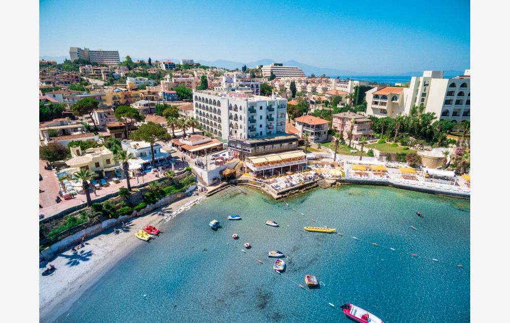 Položaj: hotel se nalazi na početku Ladies beach plaže, na 4km od centra Kušadasija, 118km od aerodroma u Bodrumu. Kompletno je renoviran 2019. godine.